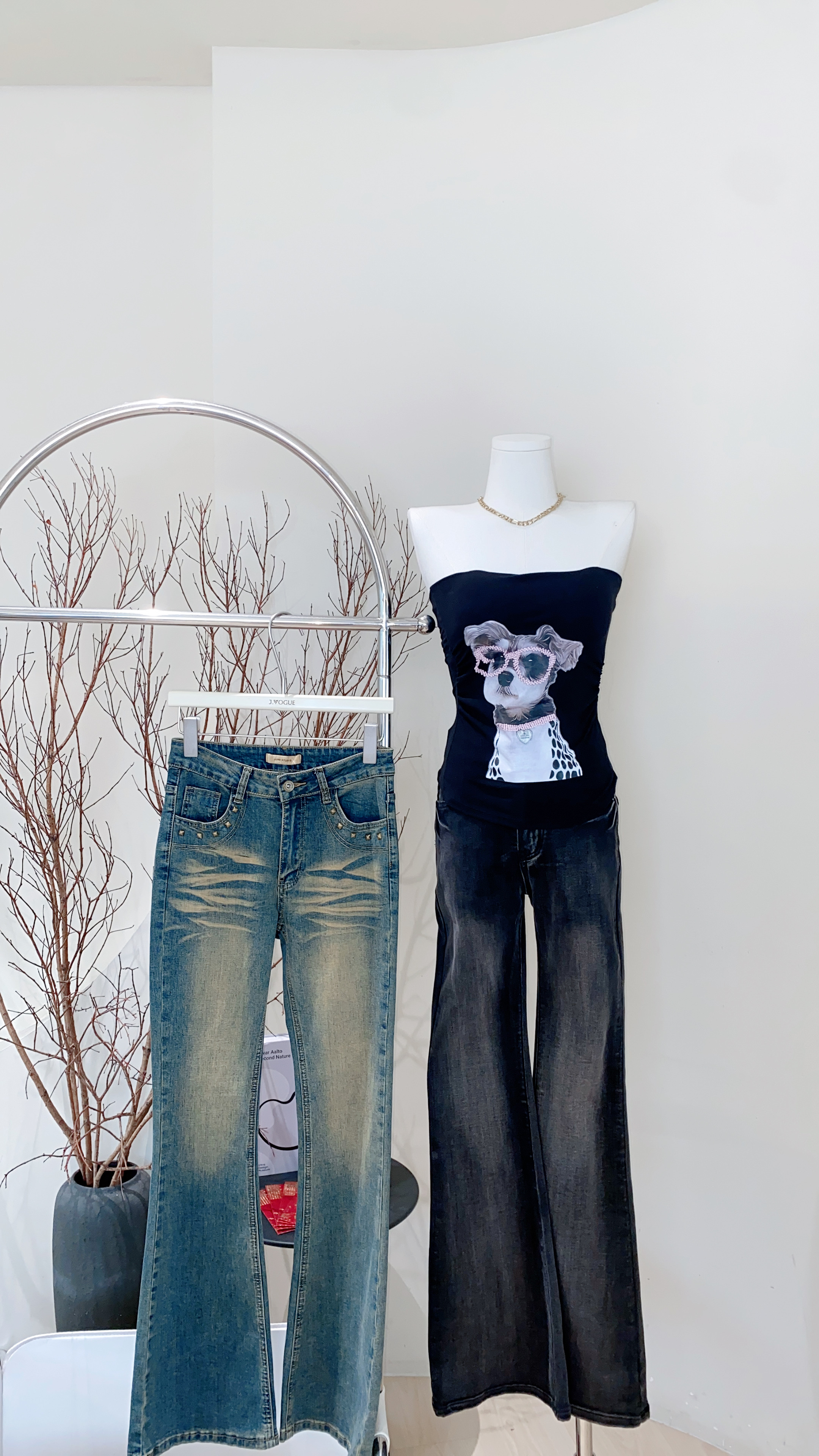 B24451美式· 微喇叭牛仔烟管裤PRICE|RM85S|腰围60-76cm、臀围78-90cm、长度102cmM|腰围64-80cm、臀围80-92cm、长度104cmL|腰围72-88cm、臀围86-98cm、长度106cm
