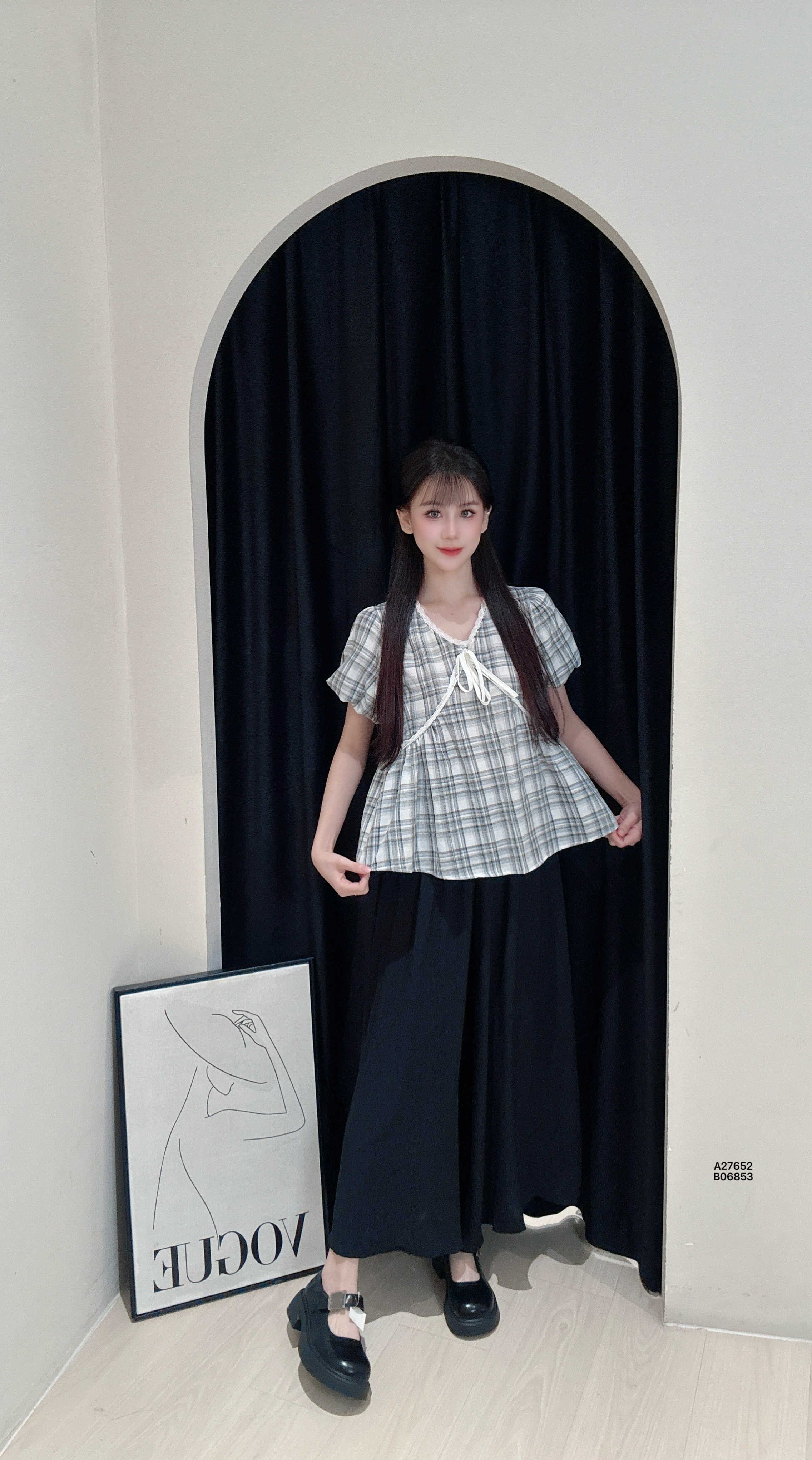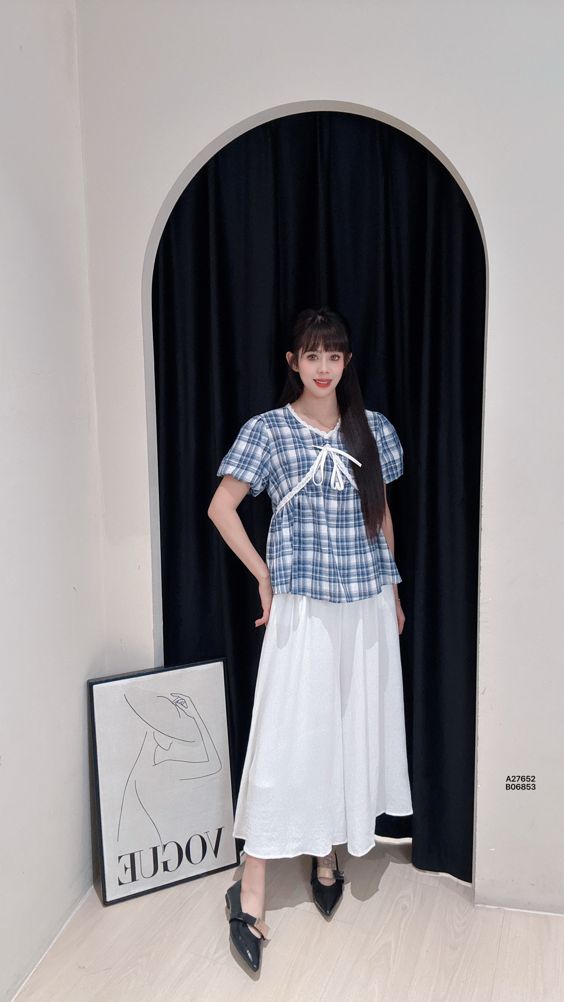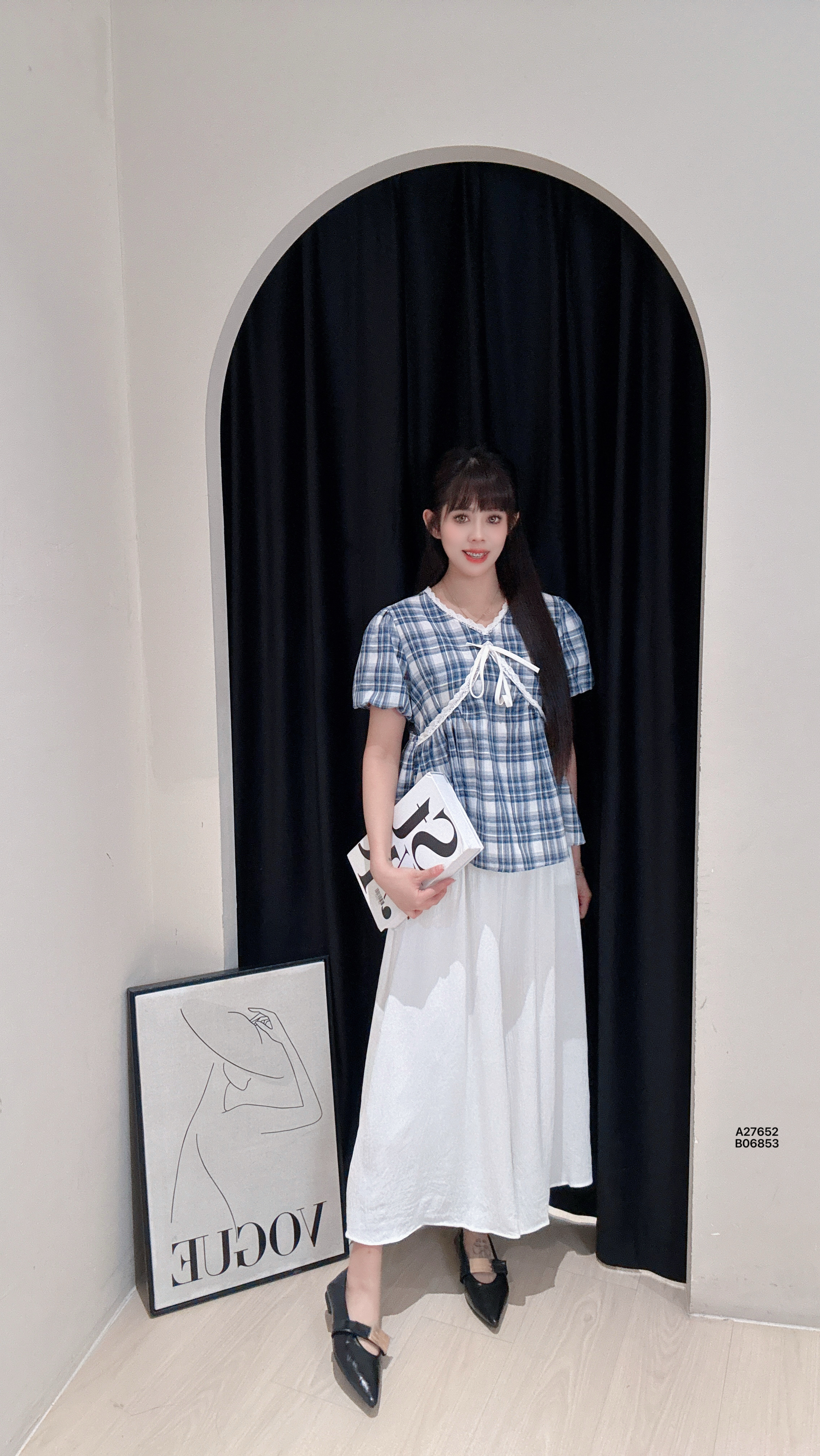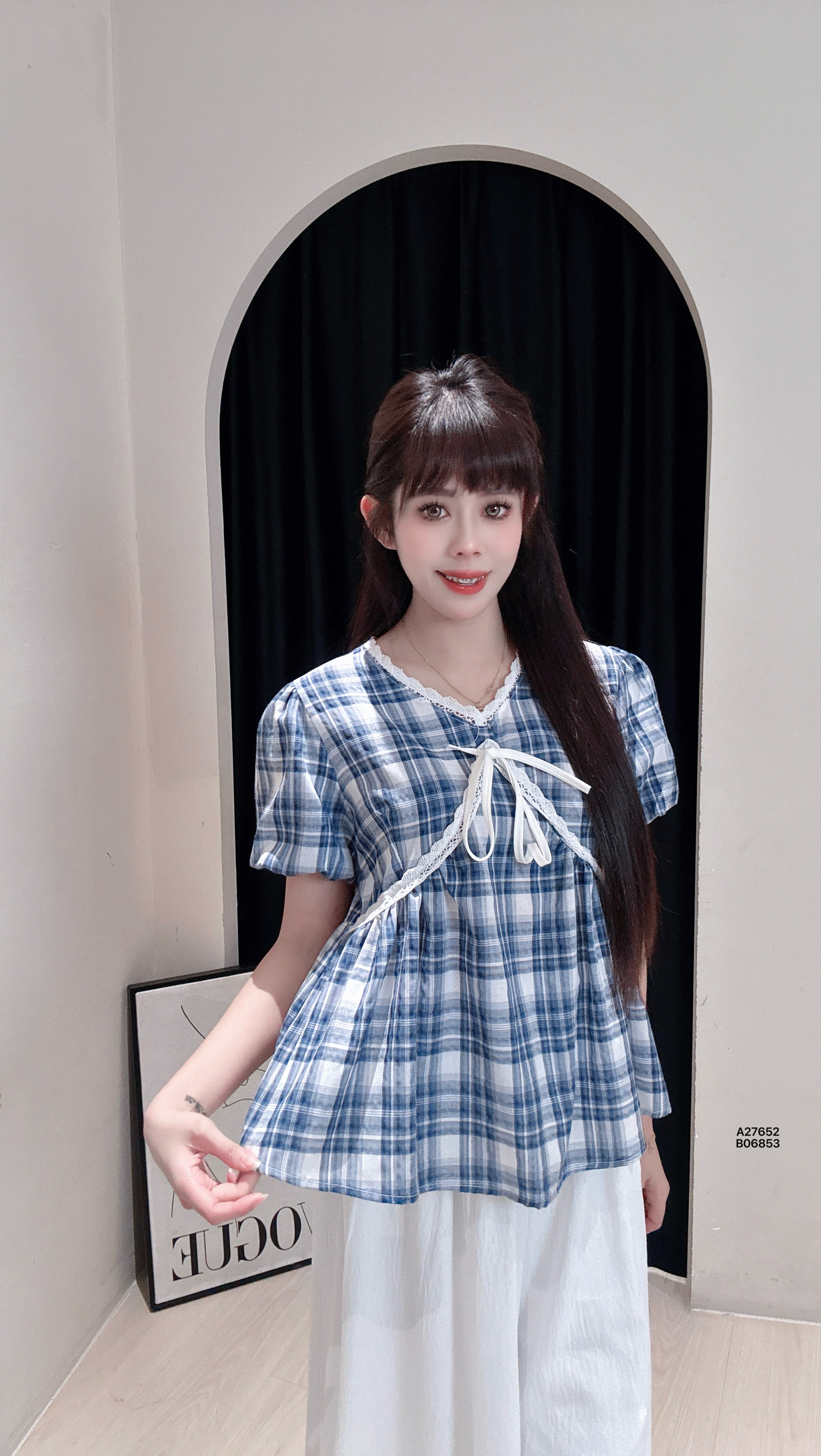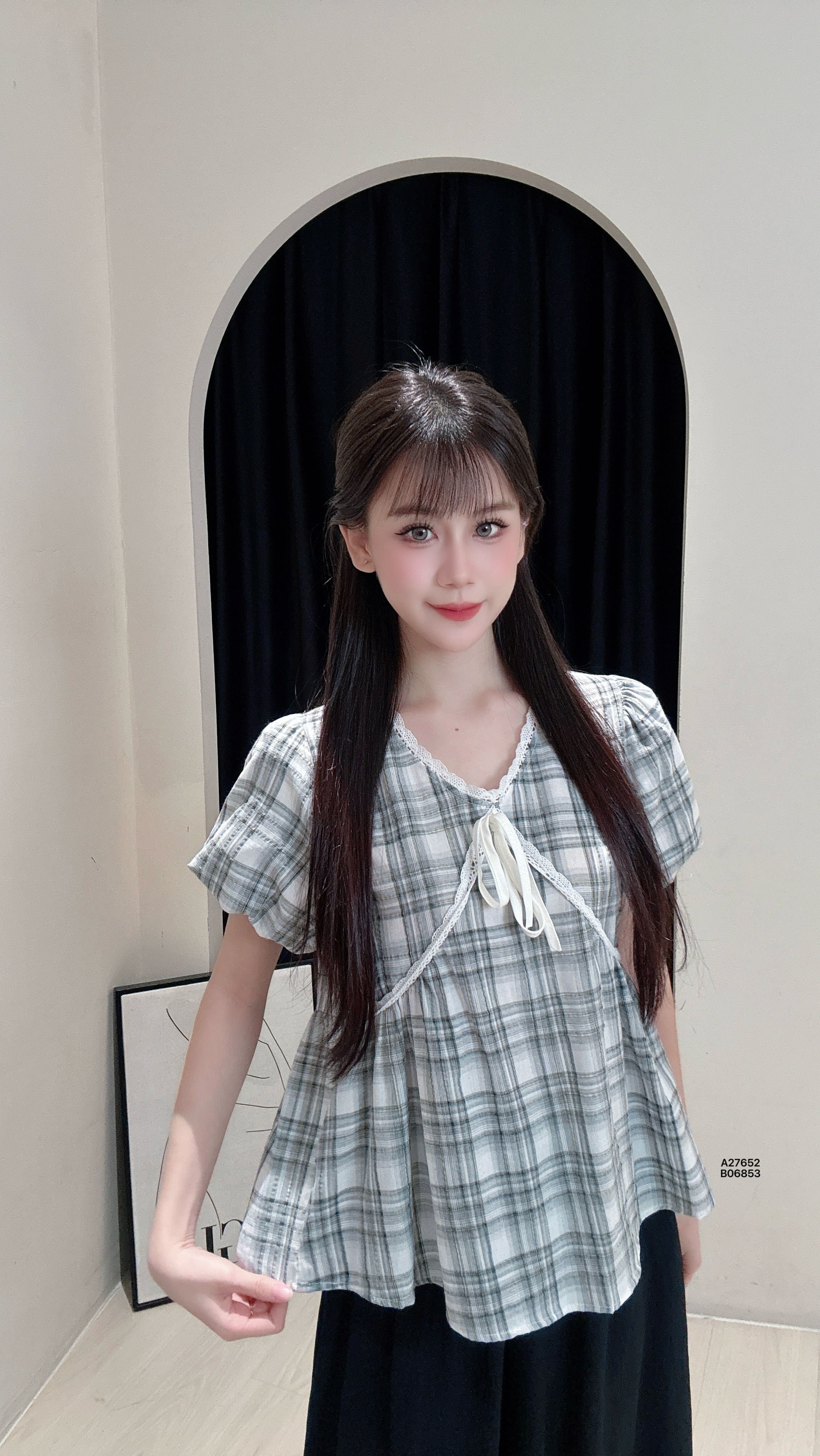 A27652甜美·格子拼接蕾丝边娃娃衫胸围90-94cm、长度56cmPRICE|RM49