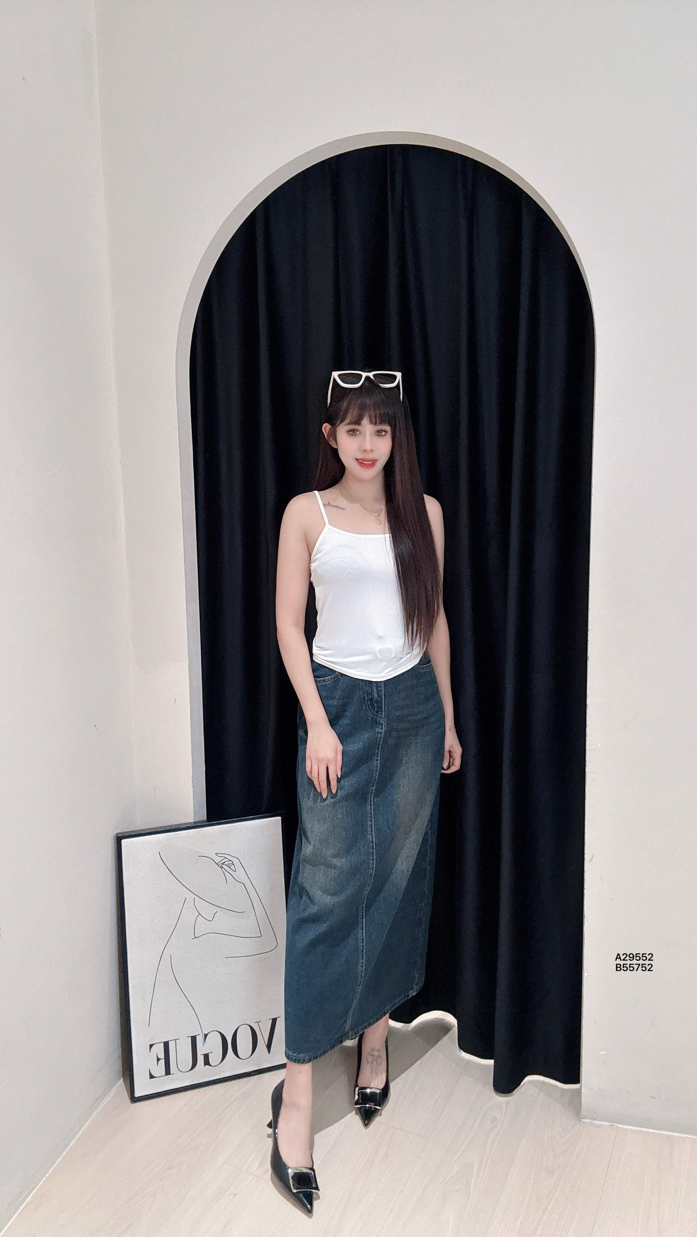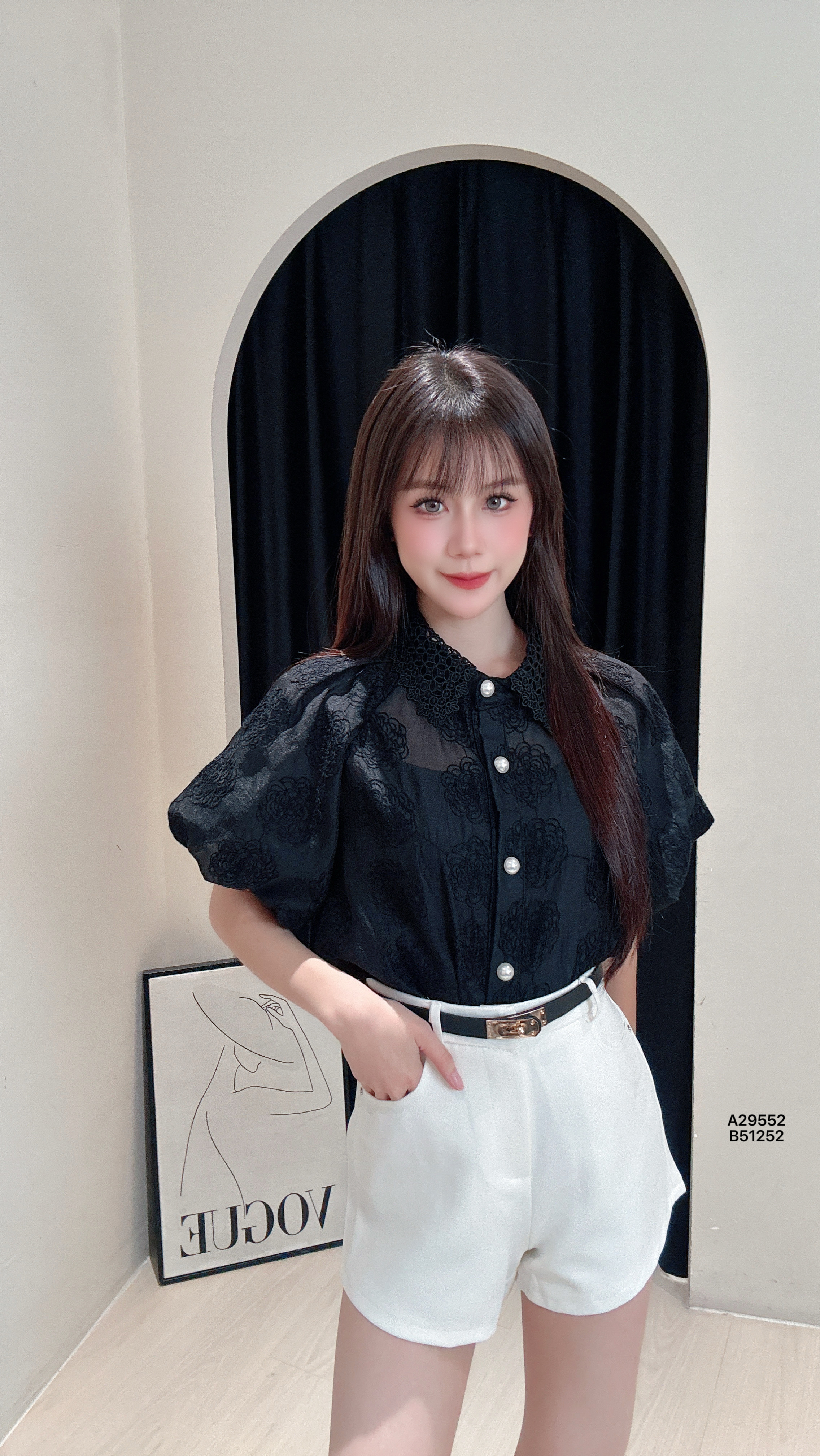 A29552泡泡袖刺绣衬衫+吊带背心衣服|胸围 104cm-108cm、长度 62cm内搭|胸围 70cm-106cm、长度 46cmPRICE|RM59
