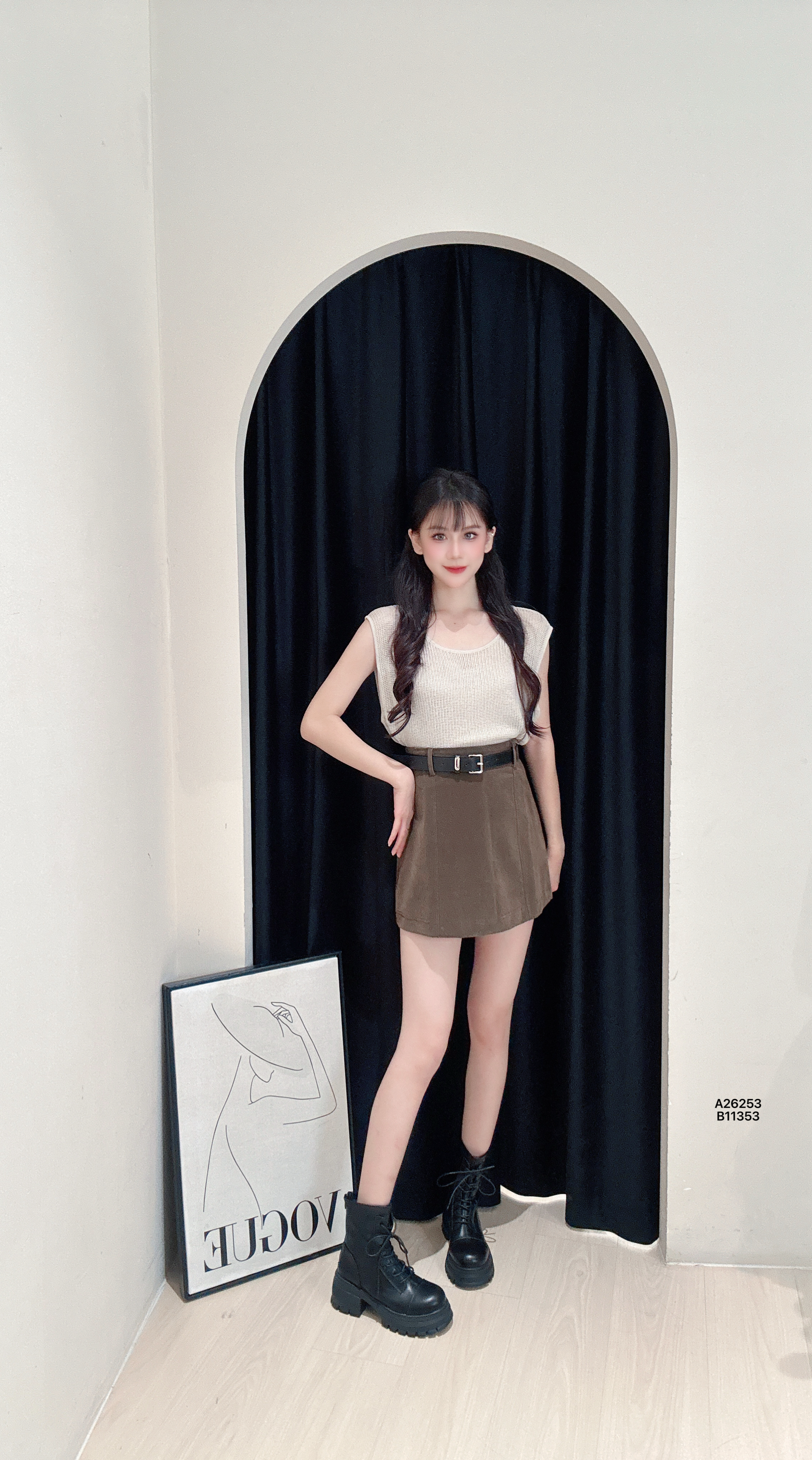 A26253韩系简约镂空假两件式上衣PRICE|RM65胸围92-106CM|长度48CM