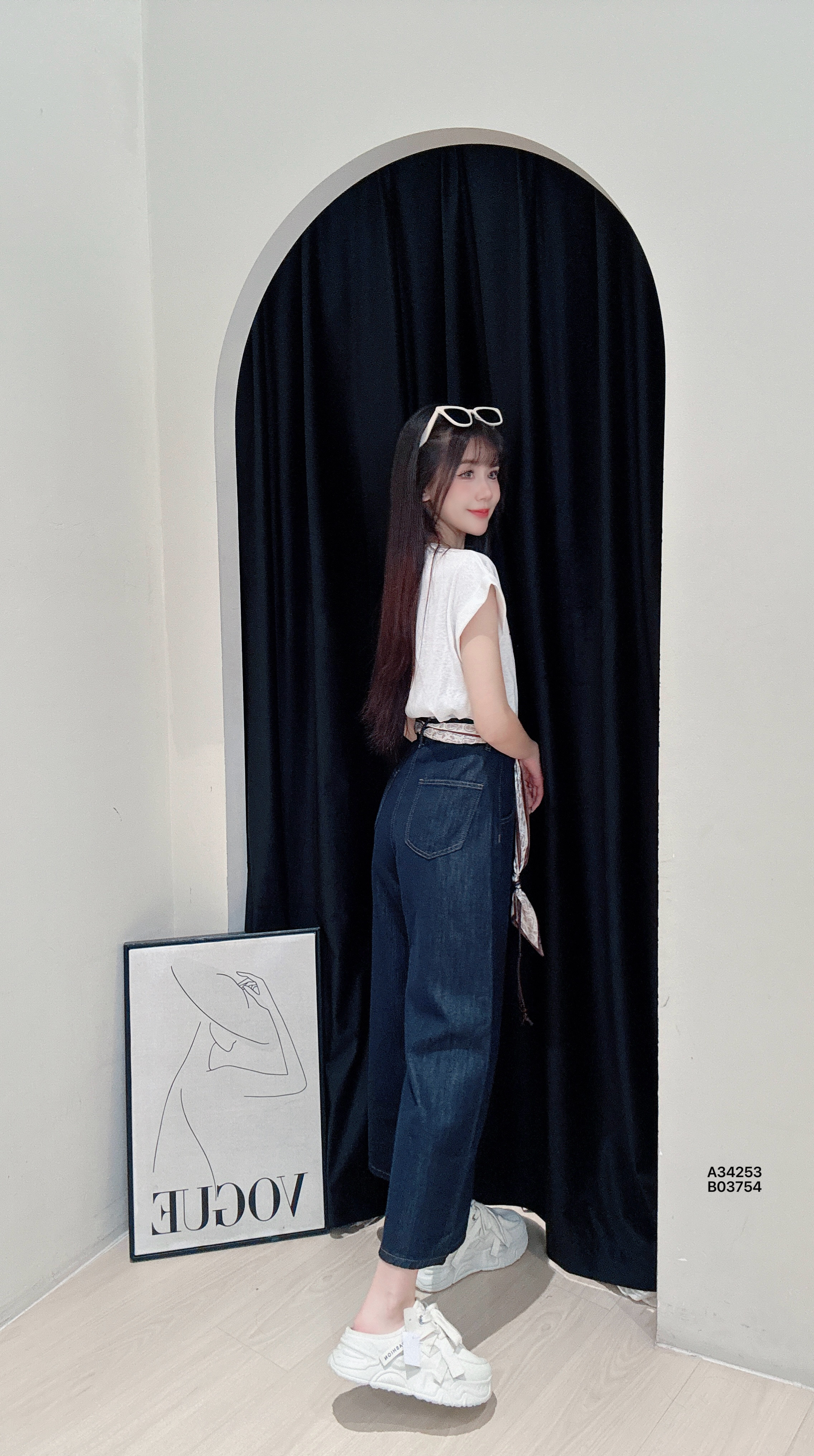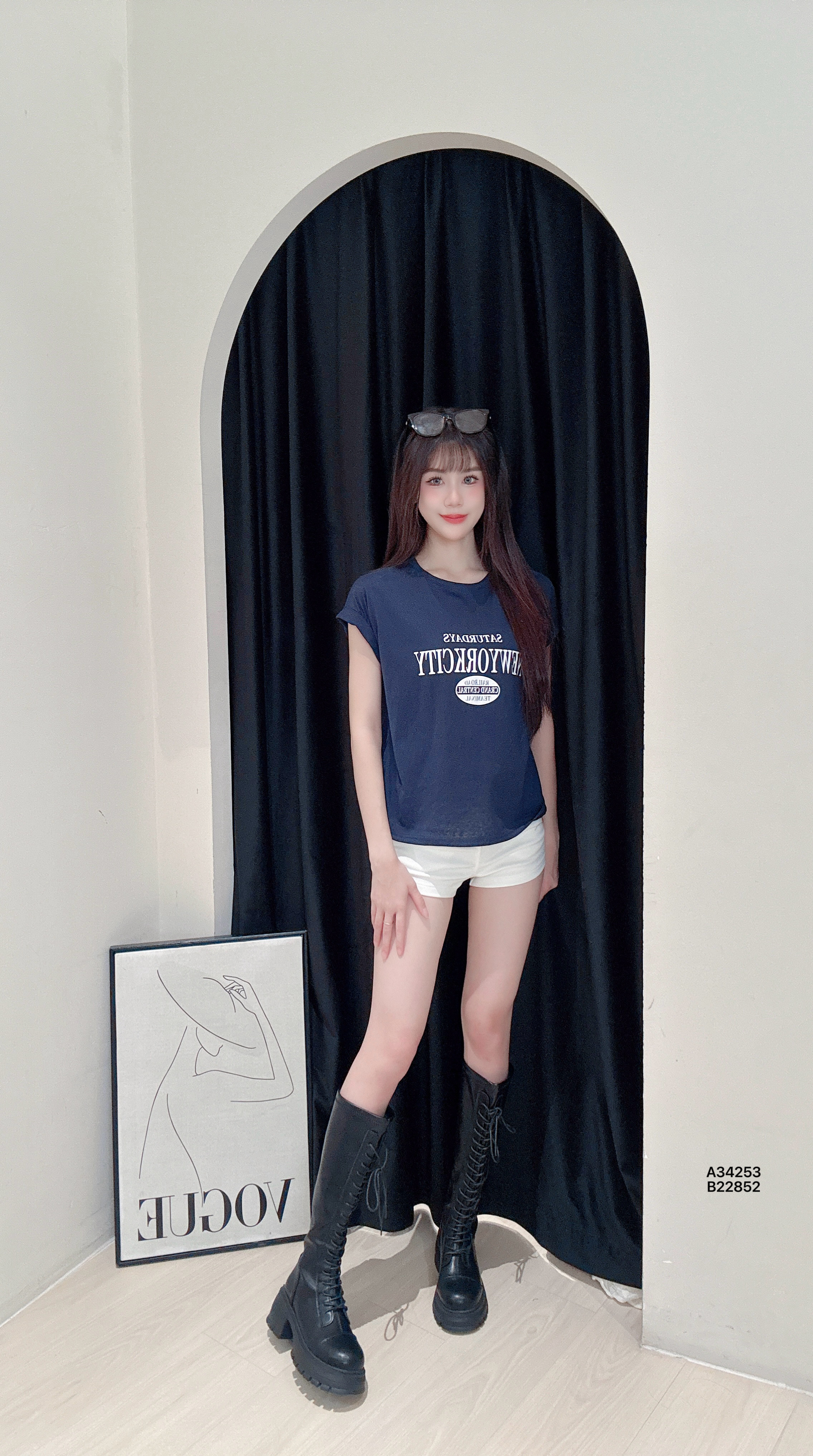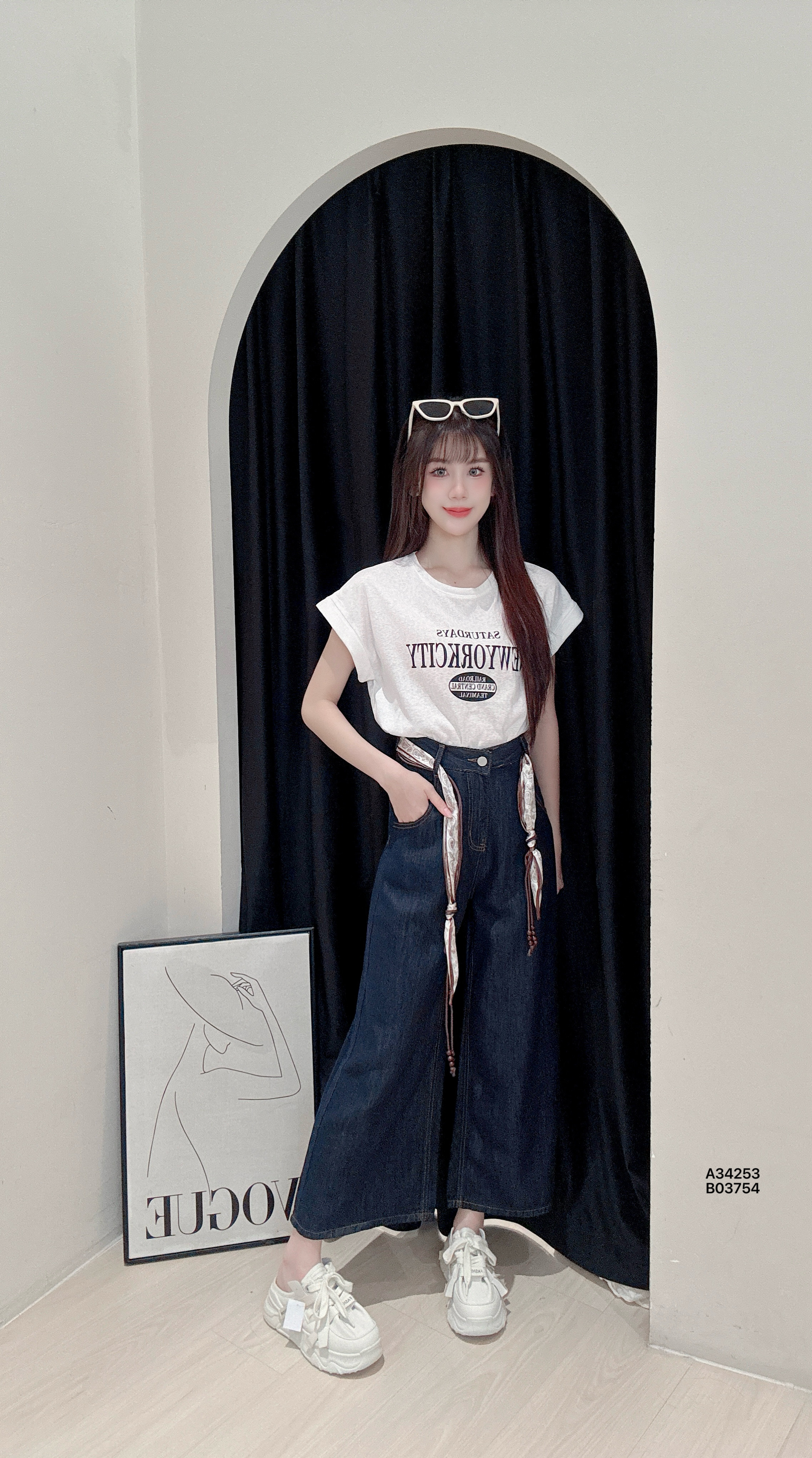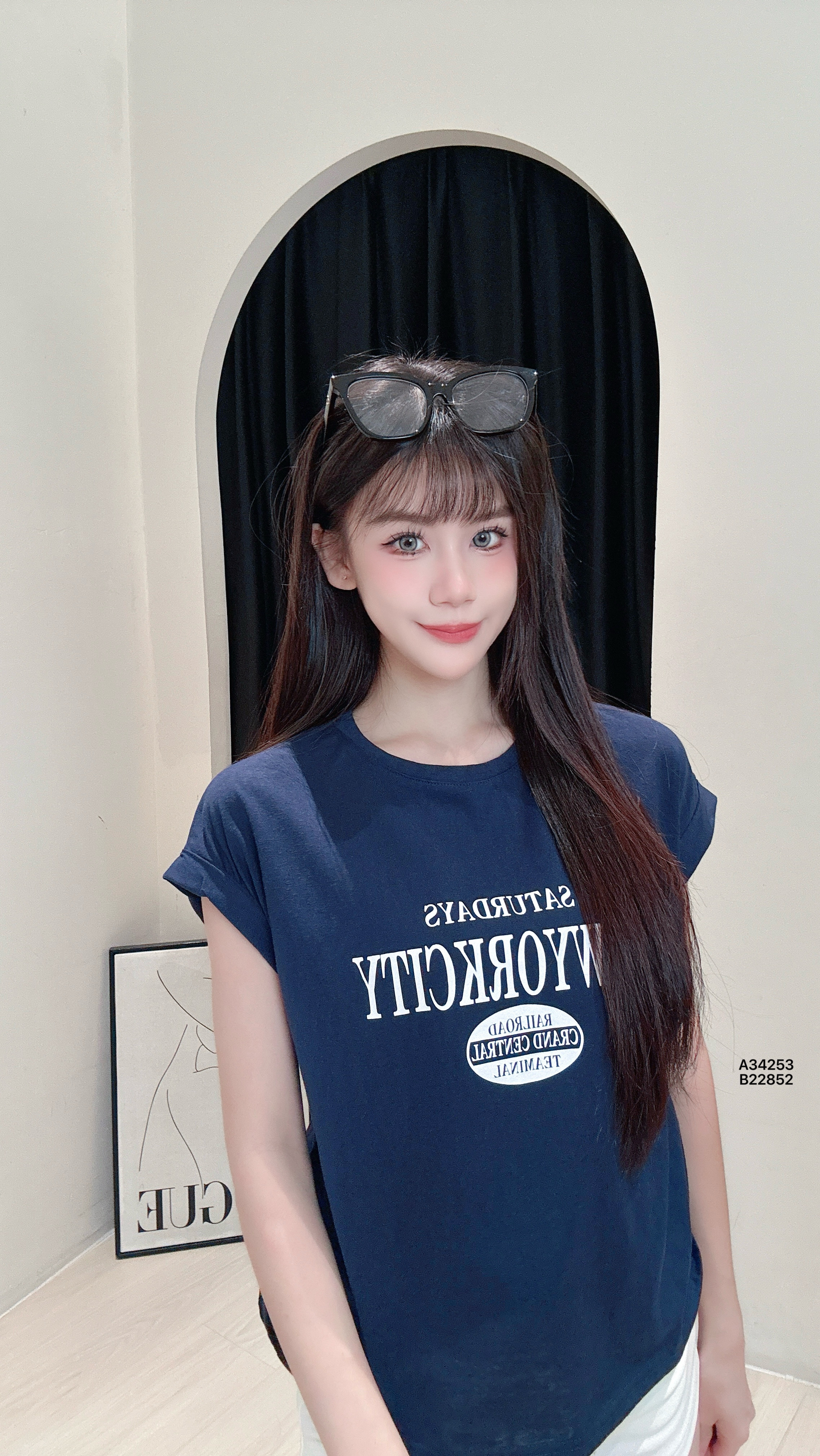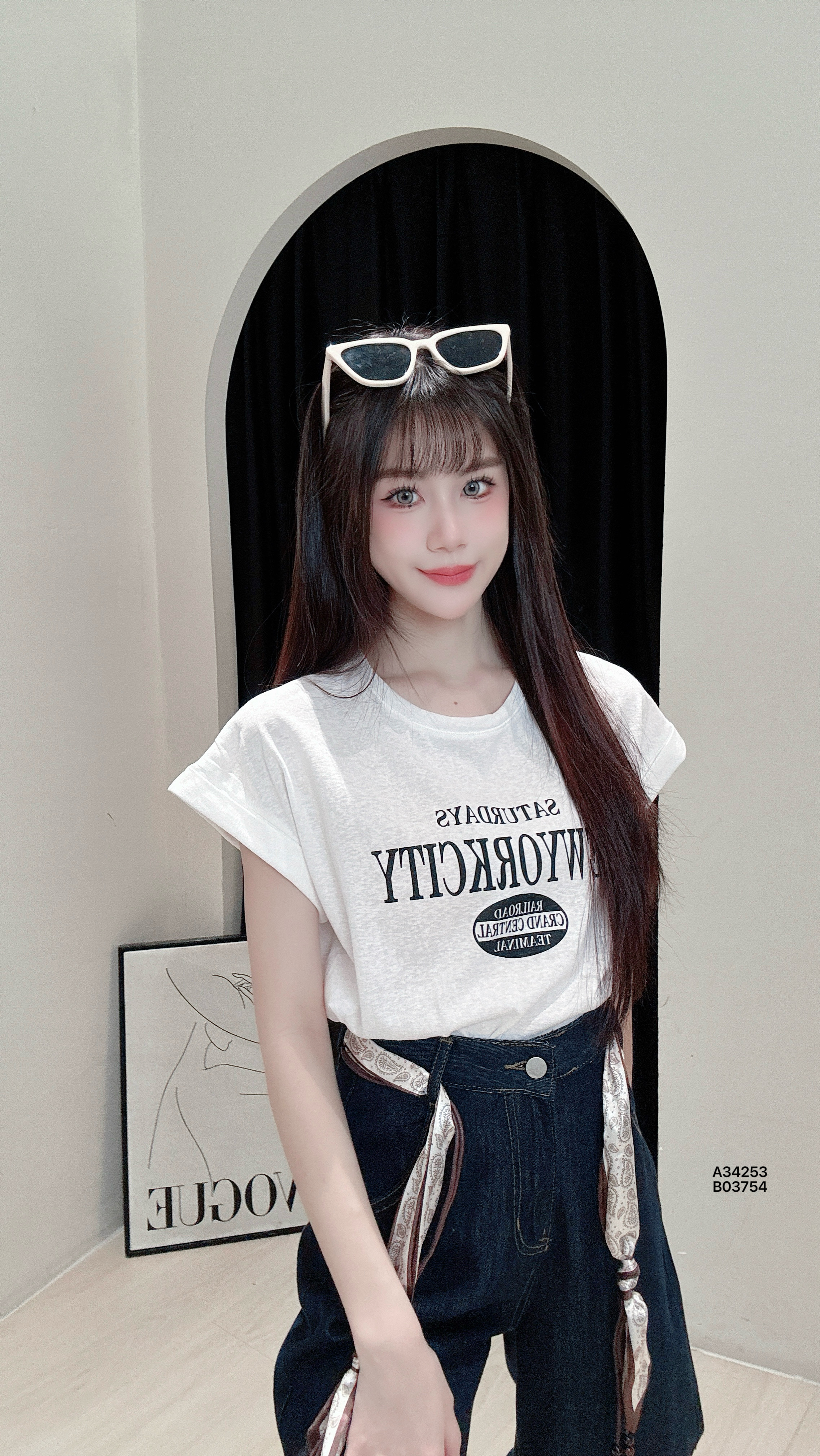 A34253美式“卷袖字母”印花上衣【包括丝巾】PRICE|RM32胸围86-102CM|程度57CM