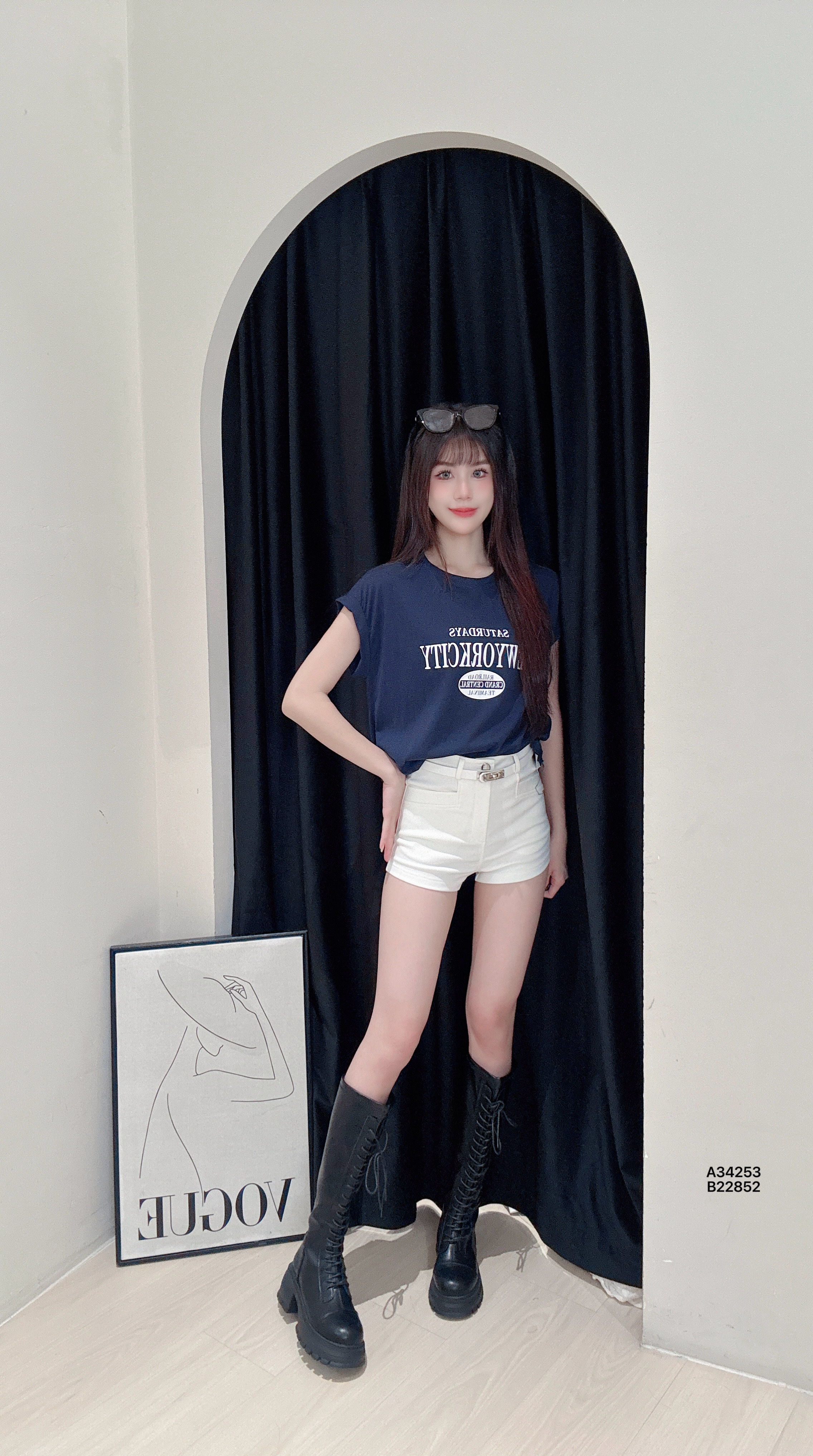 A34253美式“卷袖字母”印花上衣