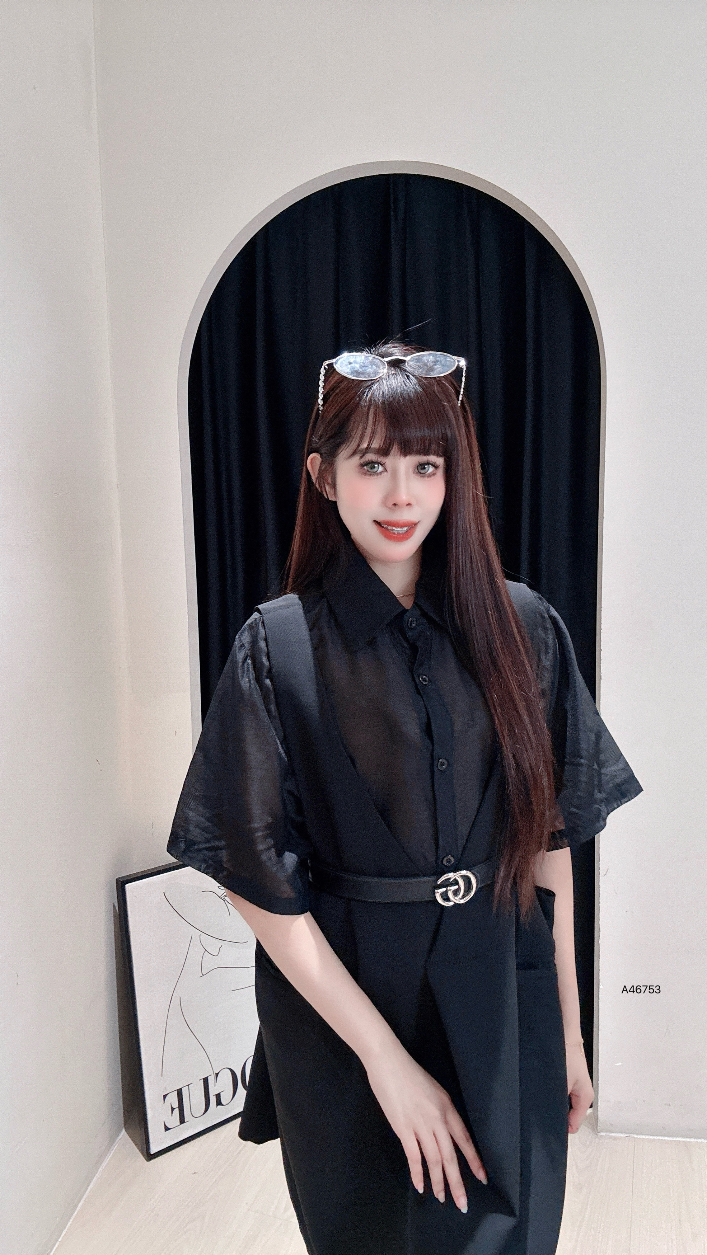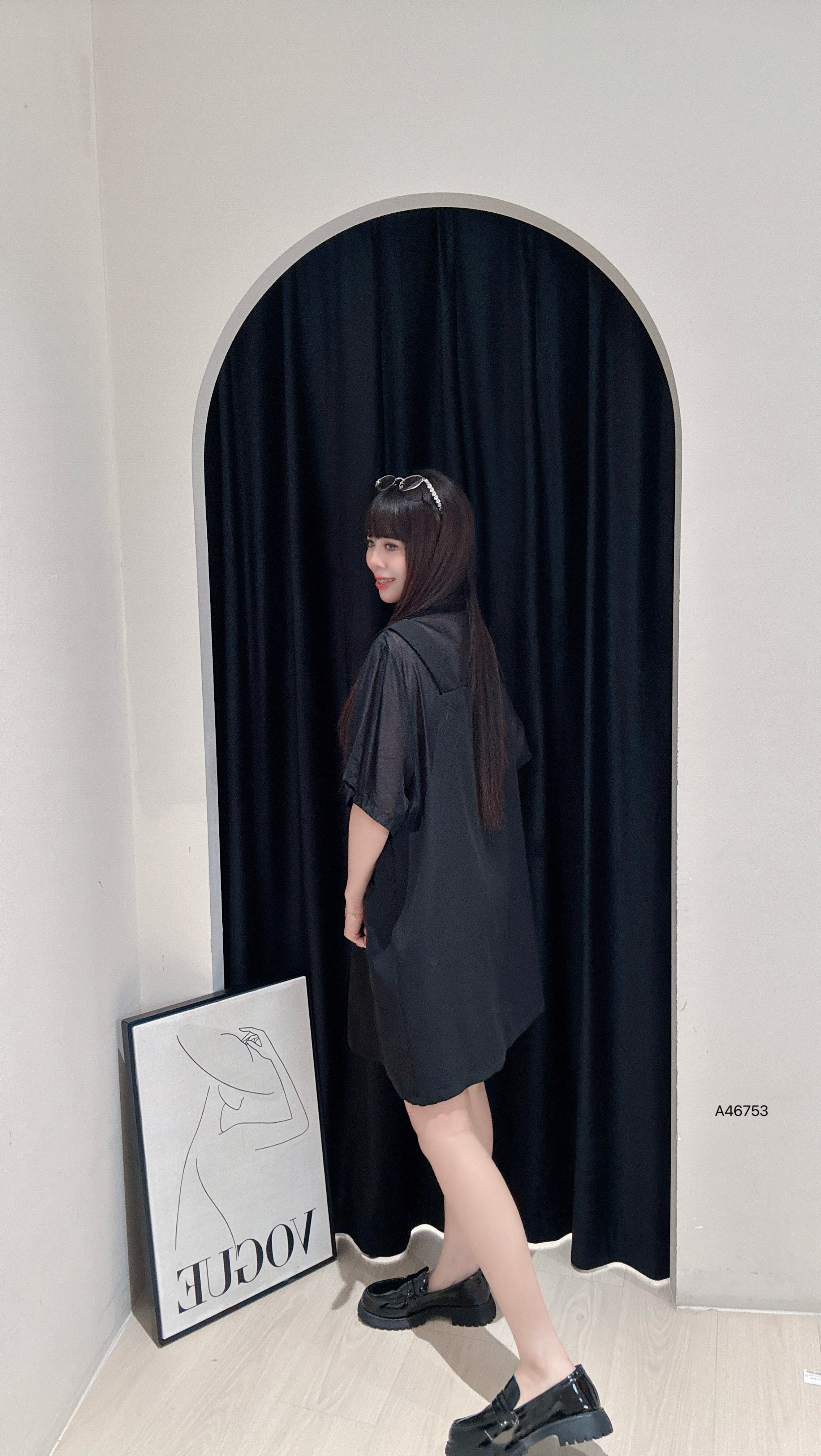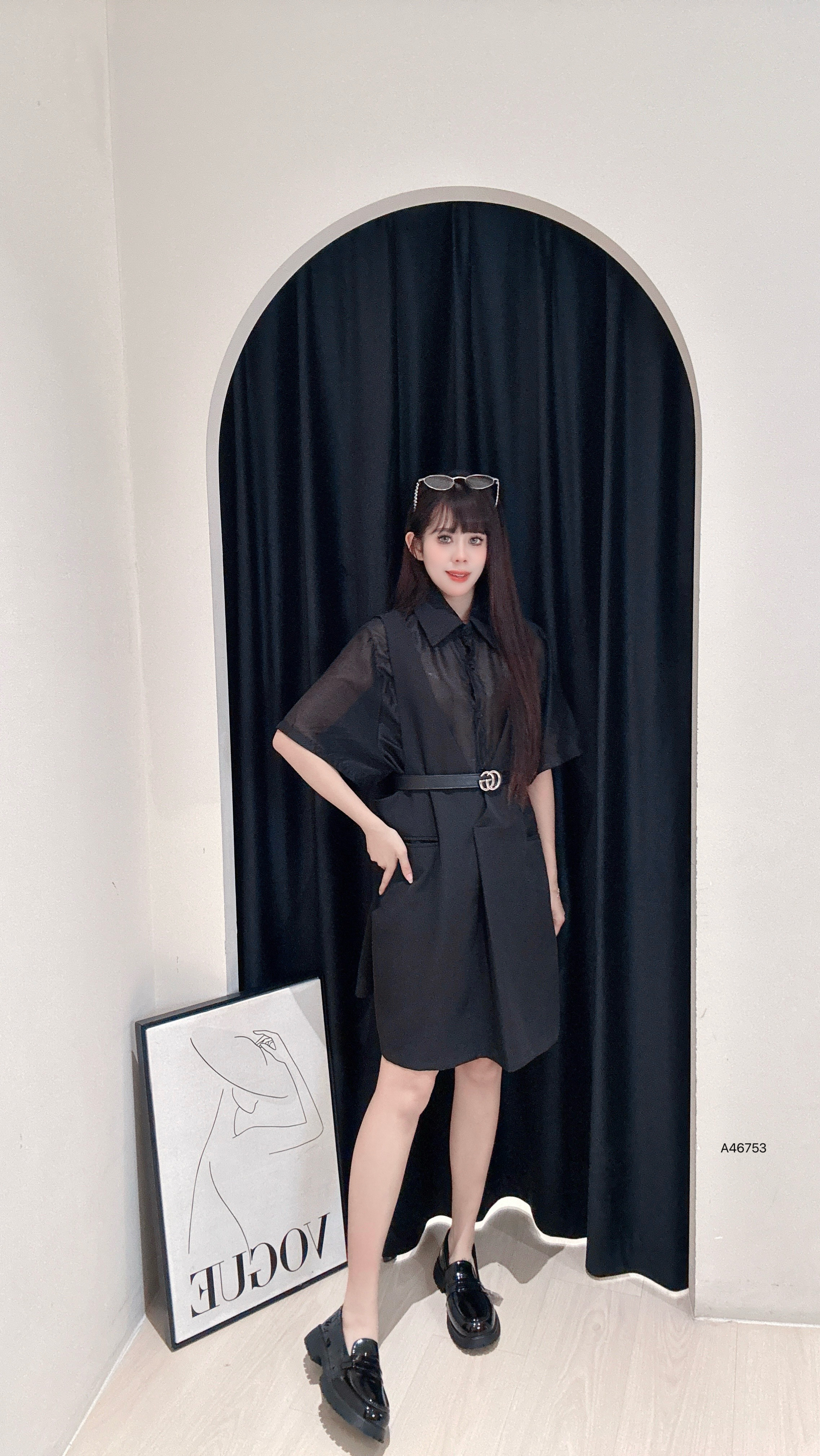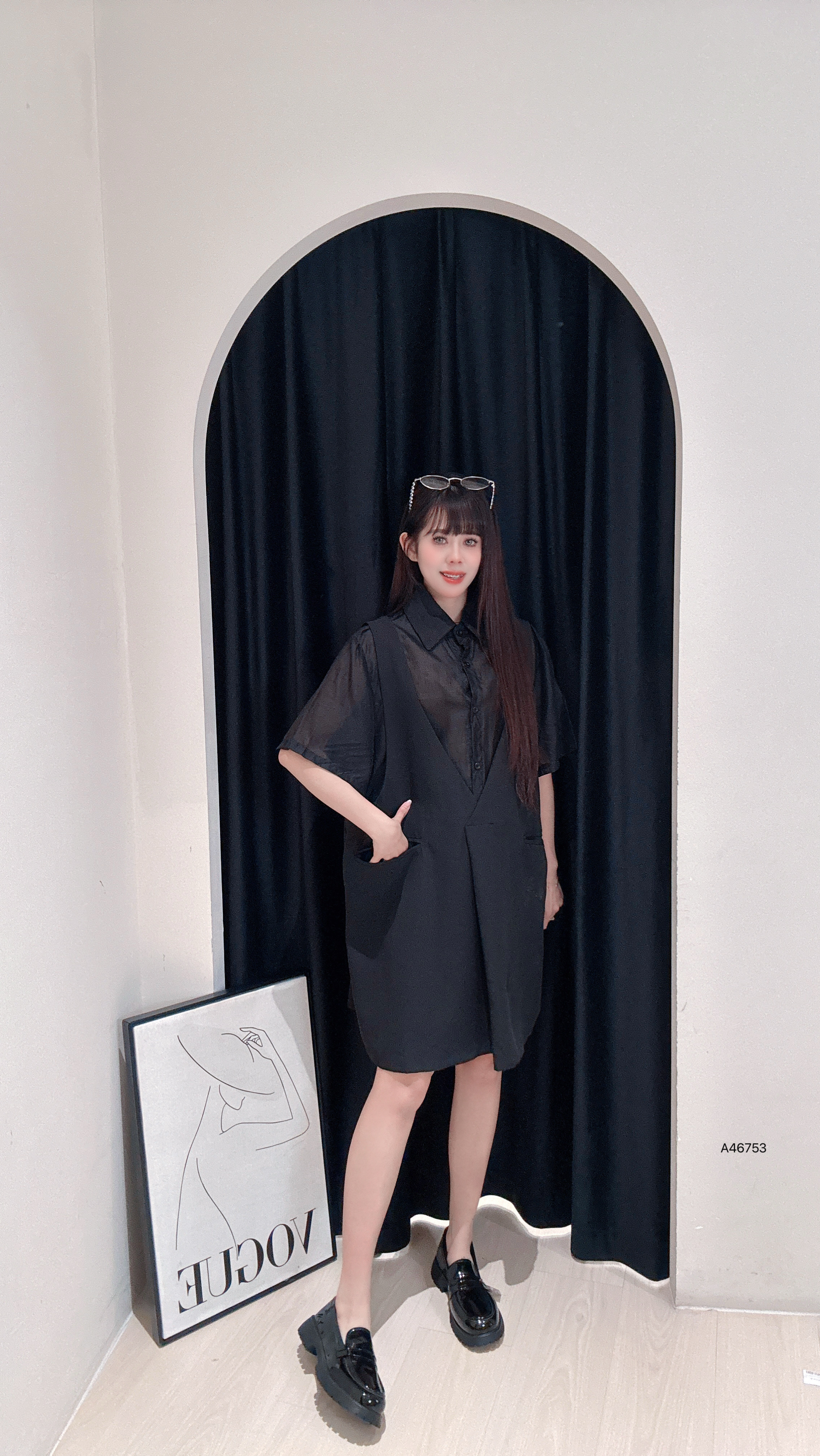A46753山版暗黑系“假两件式连衣裙