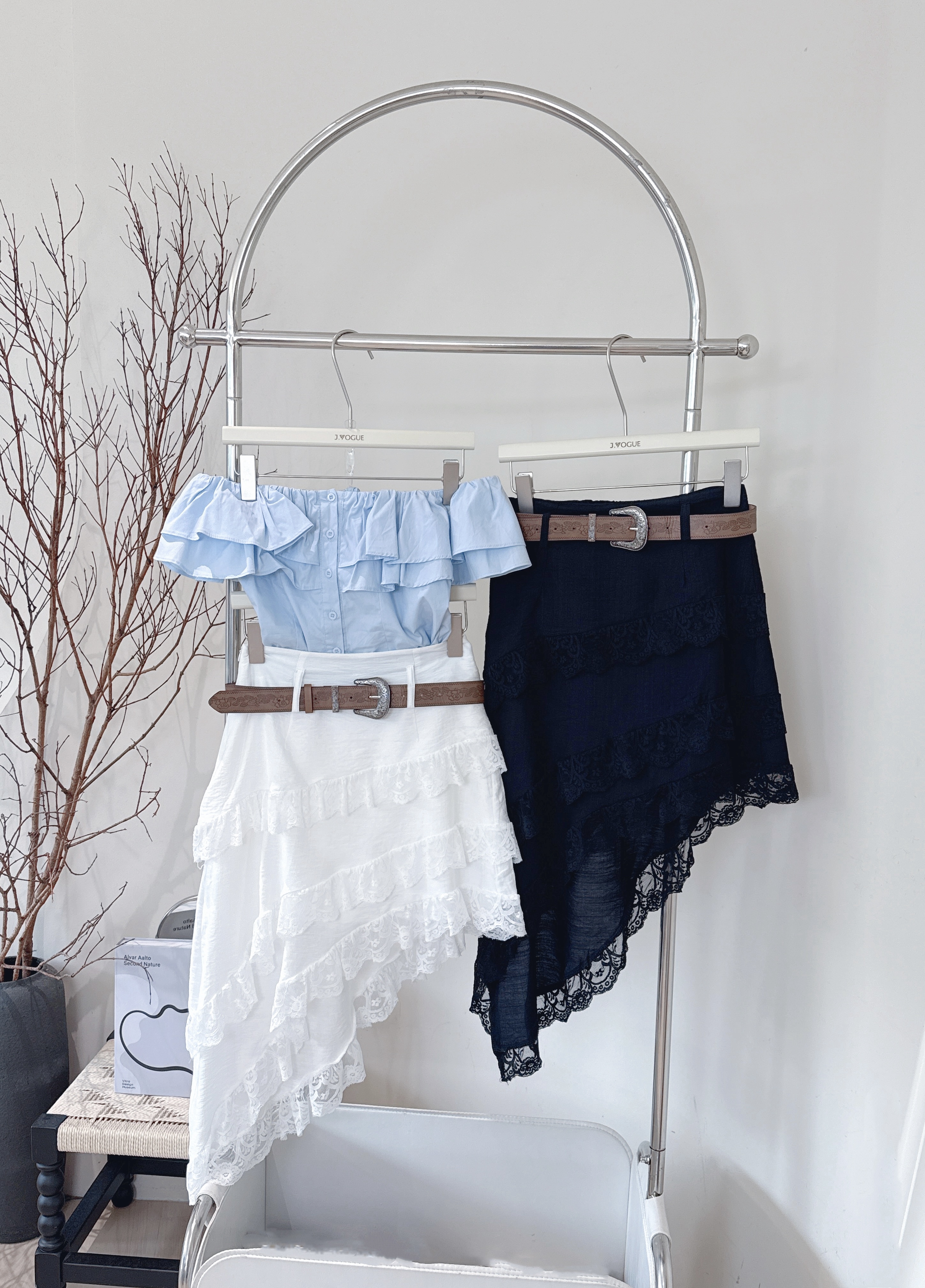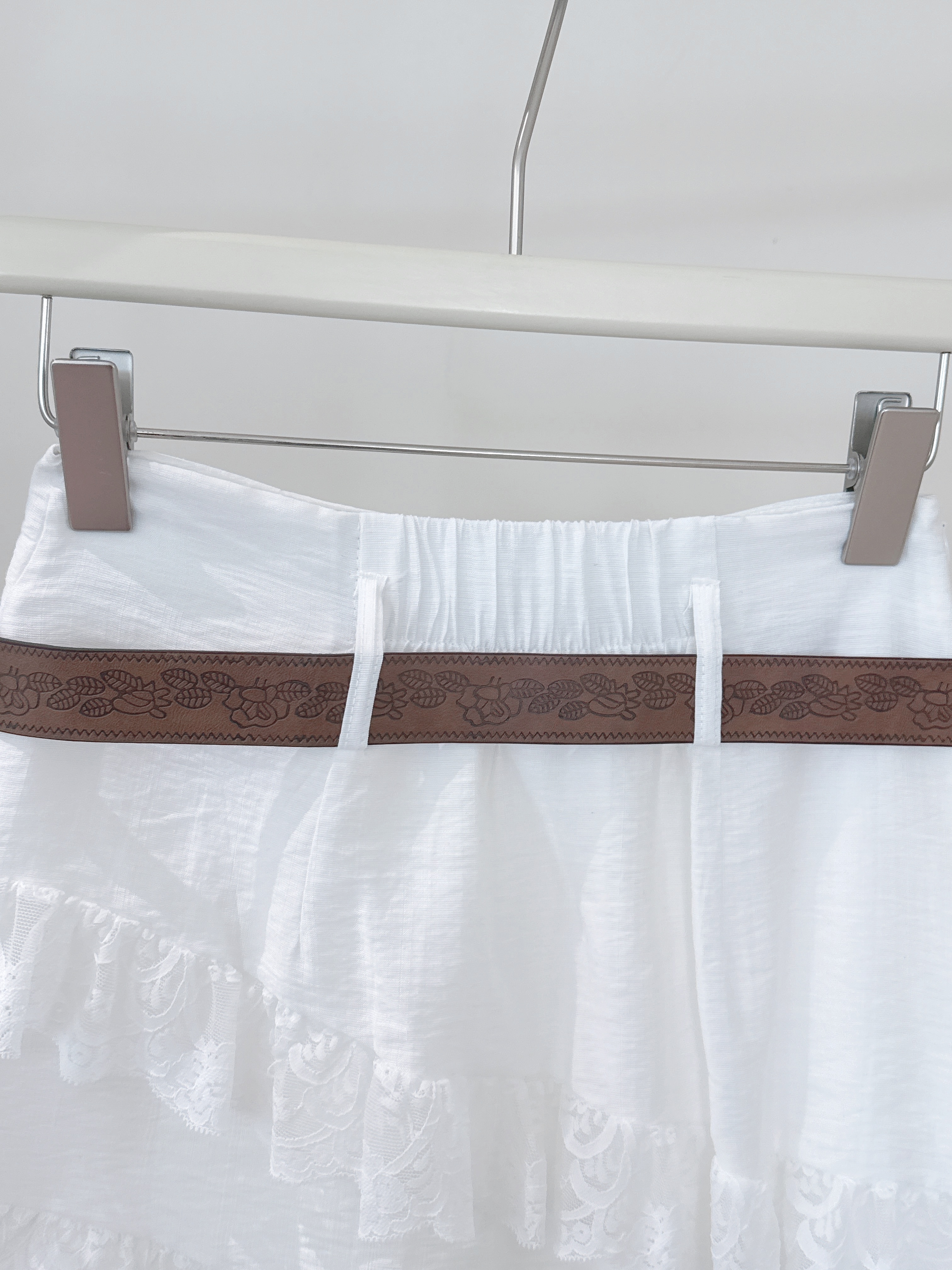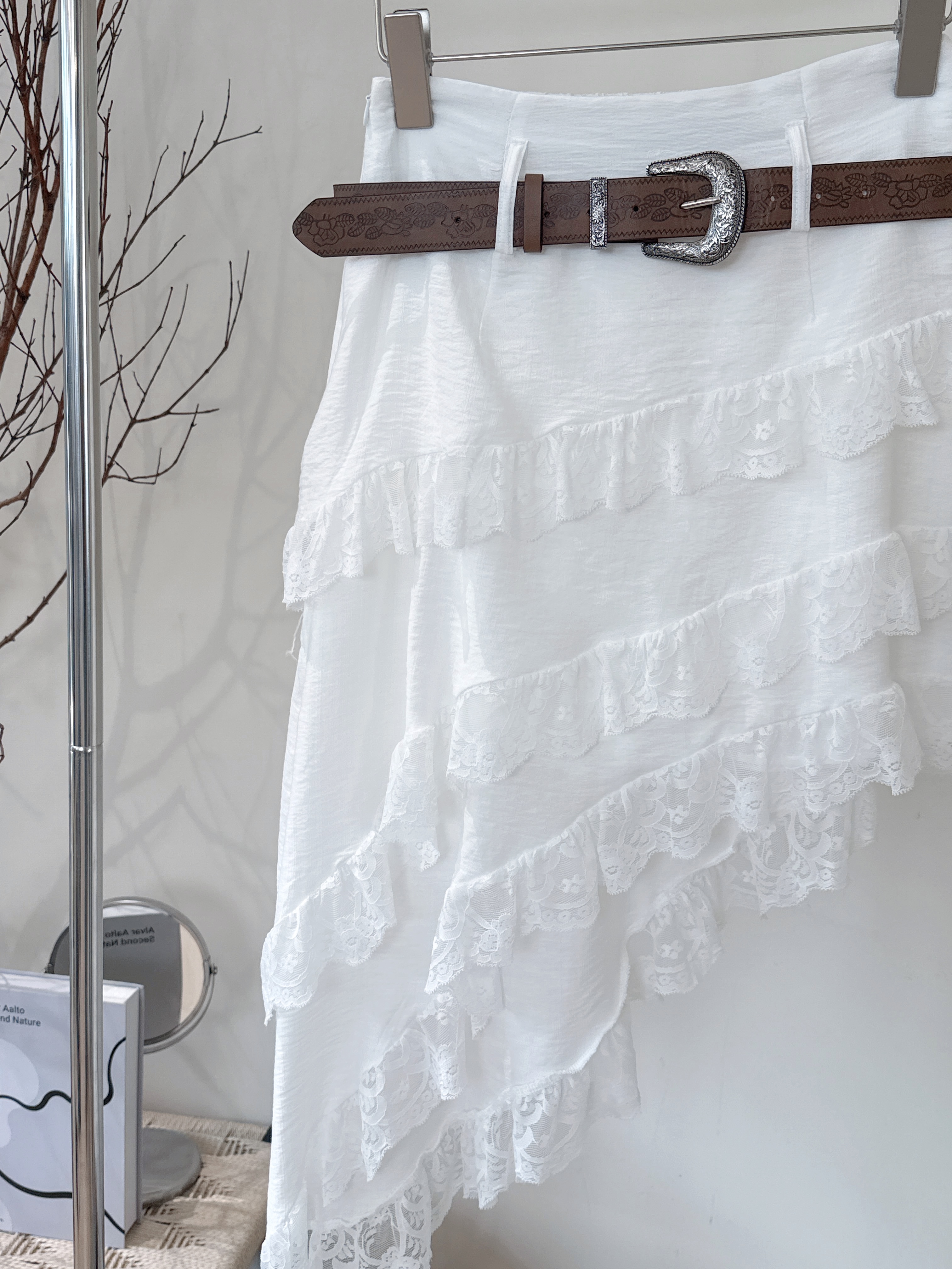 B01054复古设计蕾丝并接不规则长裙【包括腰带】PRICE|RM65S:腰围60-66CM|臀围82-88CM长度76CMM:腰围64-68CM|臀围86-92CM长度76CML:腰围70-74CM|臀围92-96CM长度76CM
