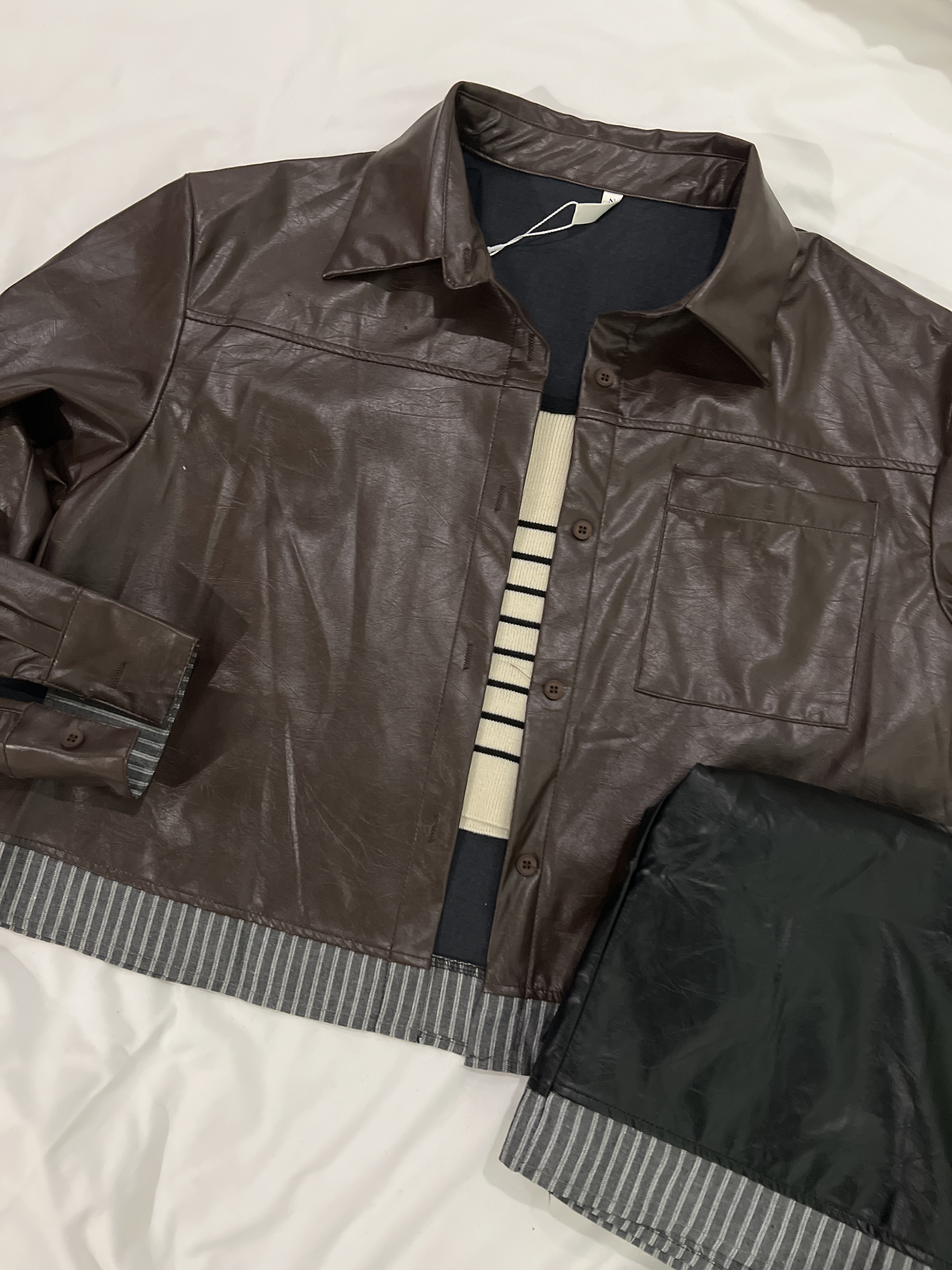 A92054秋季爆款·薄皮革撞色套装上衣PRICE| RM75(代购价RM65)尺寸: 外套胸围110-120cm|长度48cm背心胸围64-110cm|长度39cm